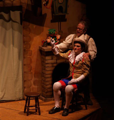 Antes de cobrar vida. Kuya Manzano como Pinocho y Jesús Alcaide como Gepetto.